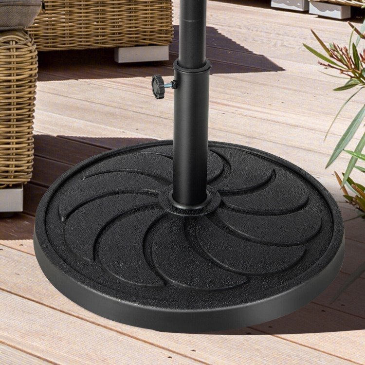 3.Security and Stability: The heavy-duty round umbrella stand measures 21.5" x 13.5" (Dia. x H) and weighs 40 lbs, which is large and heavy enough to withstand wind. More than that, there exists an adjustable fixed knob for stabilizing the pole, preventing wobbling.