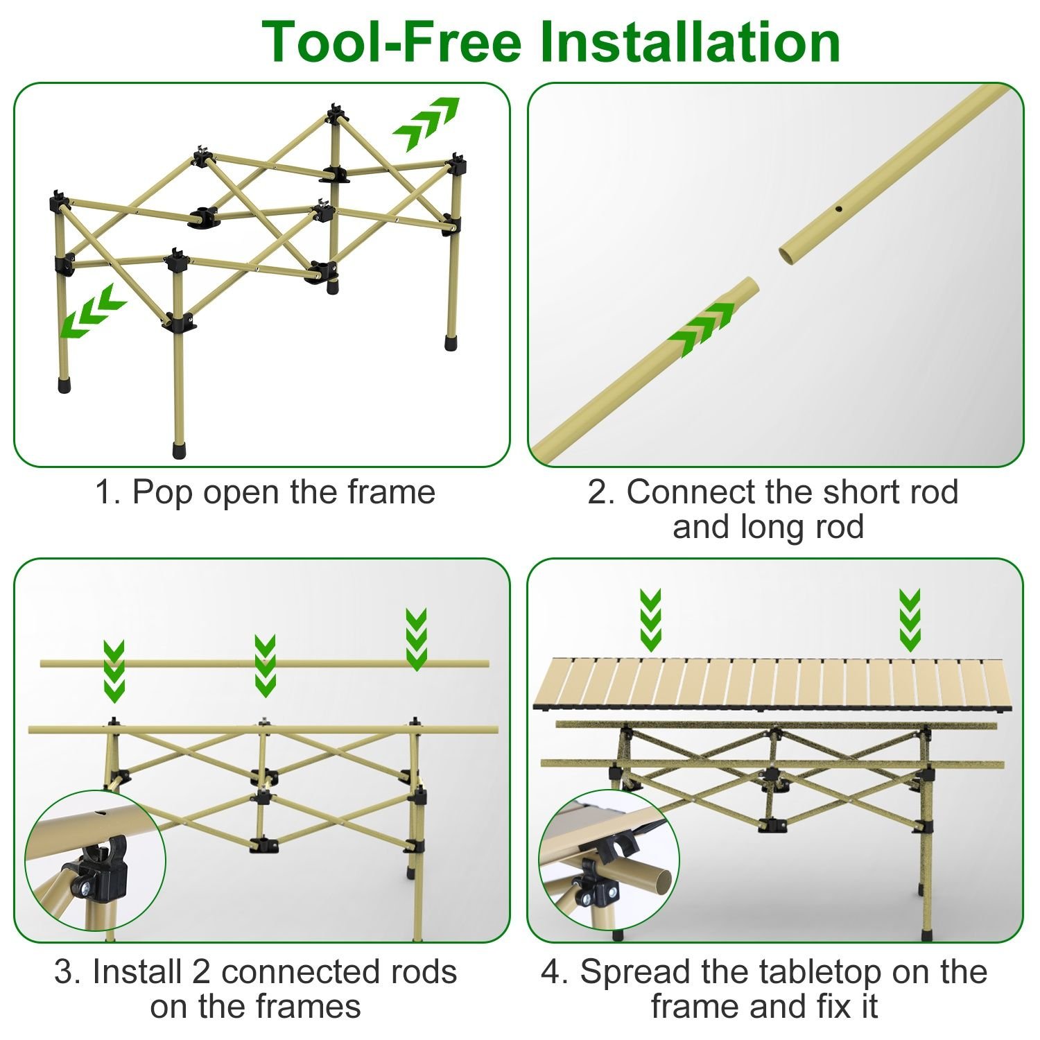 Quickly Assemble & Disassemble: Collapsible frame and roll-up tabletop require no extra tools during installation. The whole assembly process only takes a few minutes. All you need to do is to pop open the frame, attach tubes and tabletop, and prepare your table.